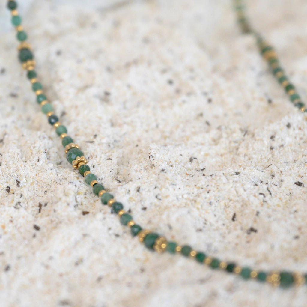 Collar con piedras mini y separadores de bronce. Viene en 3 colores verde, negro y beige.